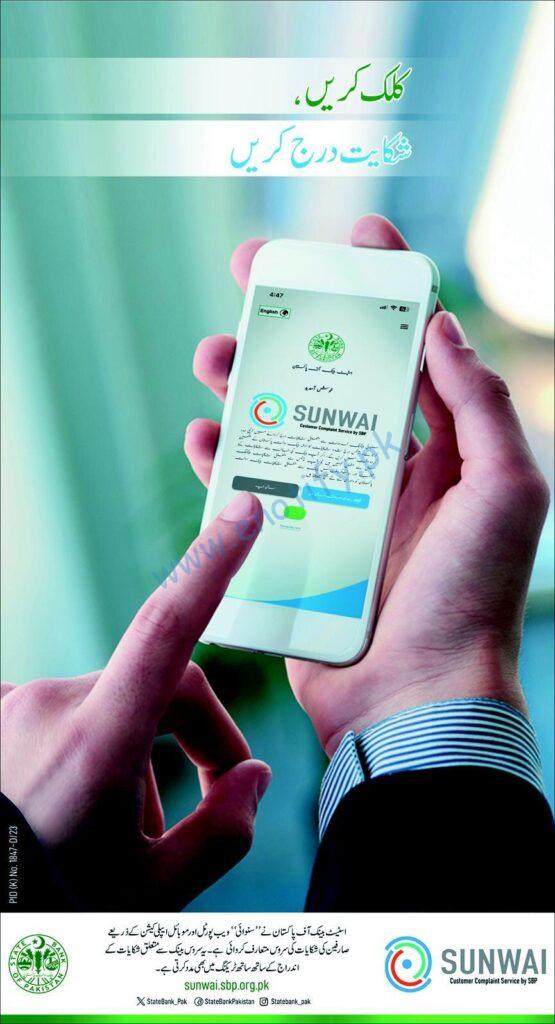 SUNWAI Customer Complaint Service by State Bank of Pakistan lunched. This customer complaint platform, available as both a web portal and a mobile app, aims to empower individuals by providing a convenient, accessible, and transparent mechanism for lodging complaints against Banks, Microfinance Banks (MFBs), and Development Financial Institutions (DFIs) operating in the country.