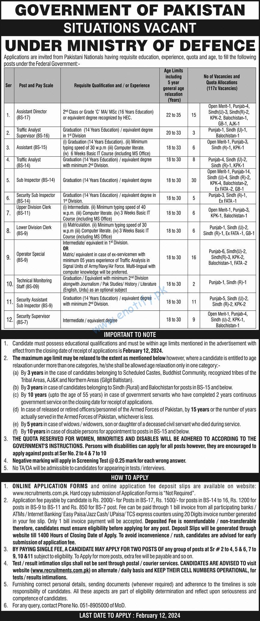 Details of Defence Ministry Jobs in Pakistan