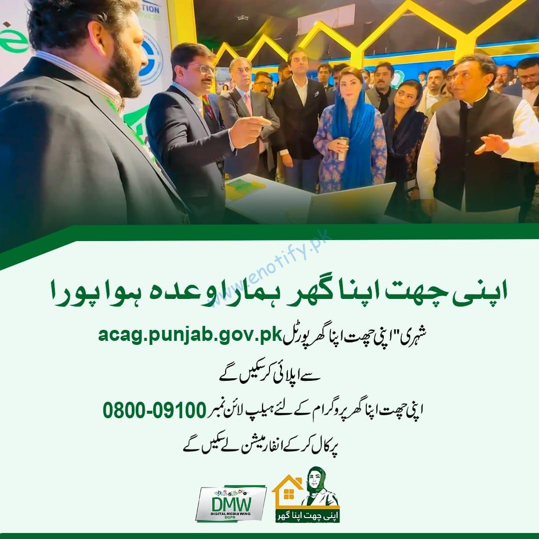 If you want to apply, you can visit the website for apply http://www.acag.punjab.gov.pk or you can apply by calling the helpline number 09100-0800 for the Apna Chhat Apna Ghar Program.