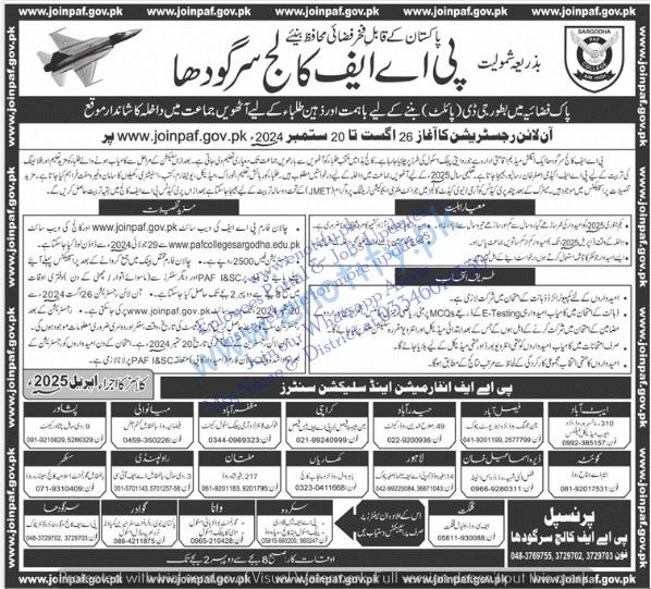 Latest Advertisement of Join Pak Air Force through Admissions in PAF Sargodha