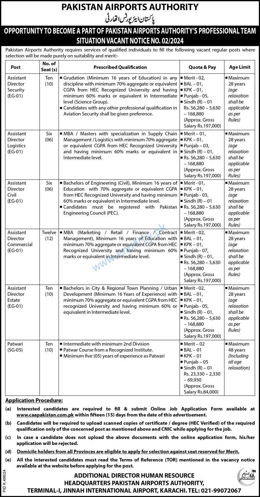 Latest Advertisement of Pakistan Airport Authority Jobs Adv No 02-2024