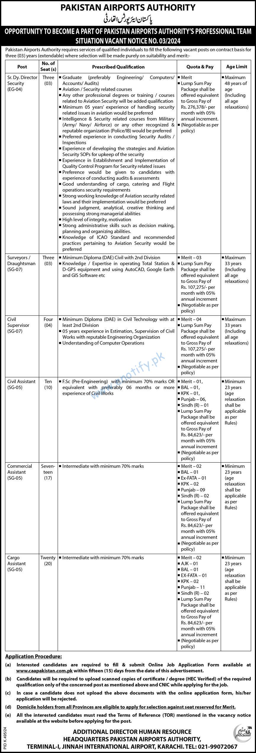 Latest Advertisement of Pakistan Airport Authority Jobs Adv No 03-2024