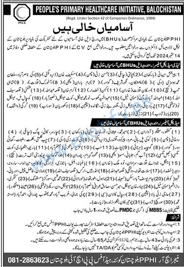 Peoples Primary Healthcare Initiative PPHI Jobs in Balochistan announced in Jang Newspaper dated 30-08-2024. The PPHI invited applications on a contract basis.