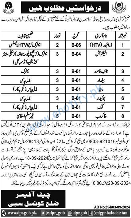 District Council Jobs in Sibi Balochistan announced in Express Newspaper dated 03-09-2024. Applications are invited to the District Council Office.