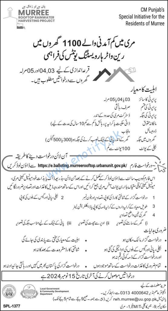 Interested residents can apply for the project by downloading the application form from https://e.balloting.murreerooftop.urbanunit.gov.pk/